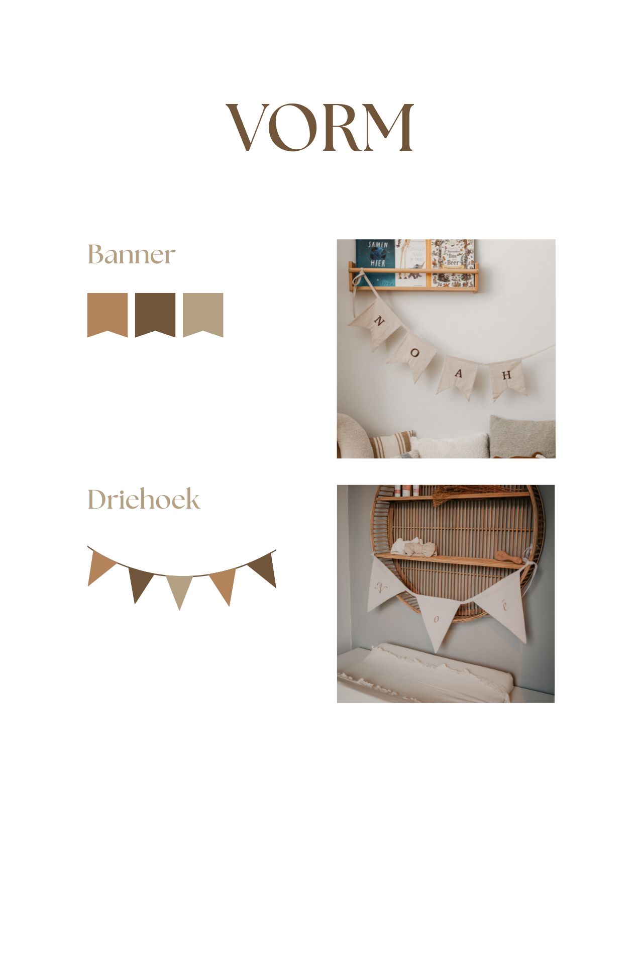 Maak het kamertje van je baby of kindje helemaal af met een unieke vlaggenlijn met naam! Kies de kleuren, vormen en letters om hem persoonlijk te maken