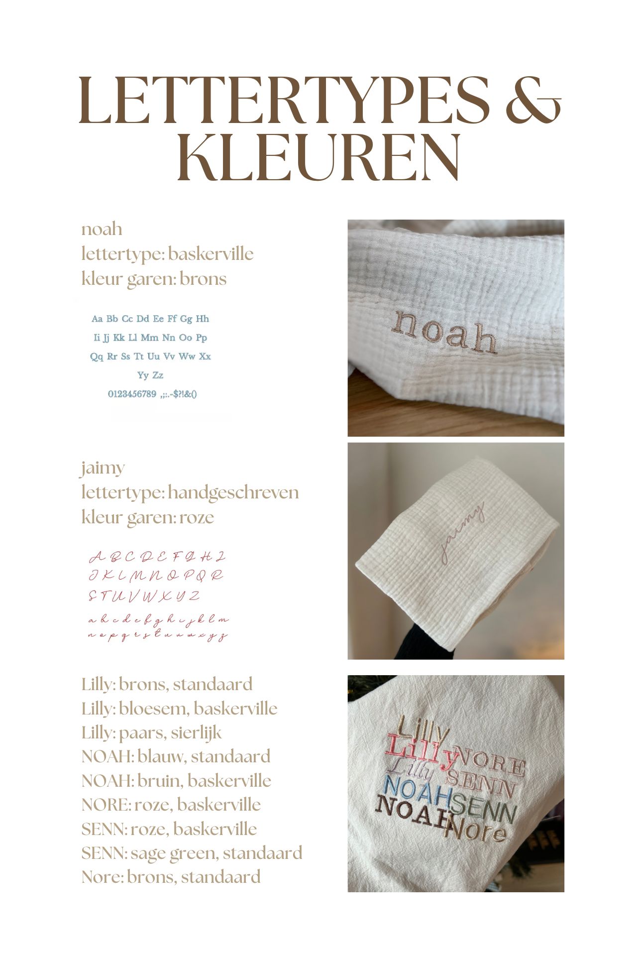 Welke lettertypes en kleuren zijn er beschikbaar?