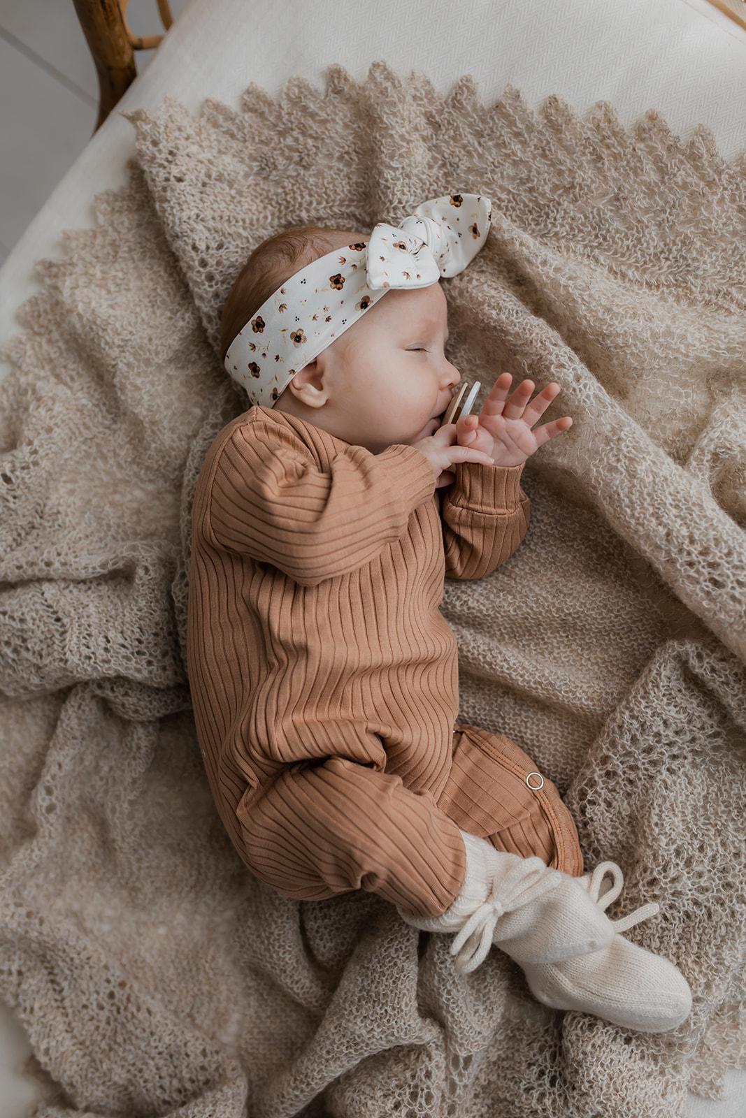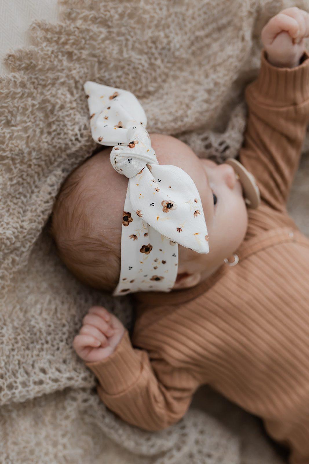 De haarbandjes zijn speciaal voor de allerkleinste meisjes gemaakt. Maak de outfit van jouw kleine meid af met een haarbandje met bloemetjes. Het haarbandje is gemaakt van een zachte jerseystof met lichte stretch waardoor je het haarbandje makkelijk om het hoofdje kan doen. Combineer het haarbandje met een broekje in dezelfde print en met één van de shirtjes voor een complete outfit.