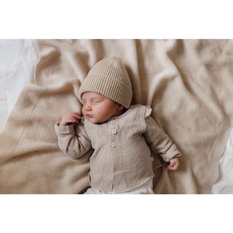 Houd het hoofdje van je kleintje warm met de nieuwe zandkleurige mutsjes van merino wol. De wol waarmee de beanies (én bijpassende slofjes) zijn gemaakt heeft een zelfreinigende eigenschap en is van hoge kwaliteit. Beide items zijn het hele jaar door te dragen doordat Merino warmte reguleert.