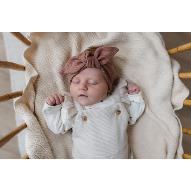 Een schattig tuinpakje voor je meisje, gemaakt van ribstof die makkelijk te combineren is met een longsleeve met print of één van de blousejes. Door de soepele stof is het pakje gemakkelijk aan te trekken en kan jouw kleintje hier vrij in bewegen. Ook leuk om te combineren met een newborn mutsje of haarbandje. Het pakje heeft vier houten knopen, zodat je zelf kan bepalen hoe strak of los je de banden doet.