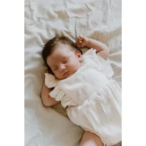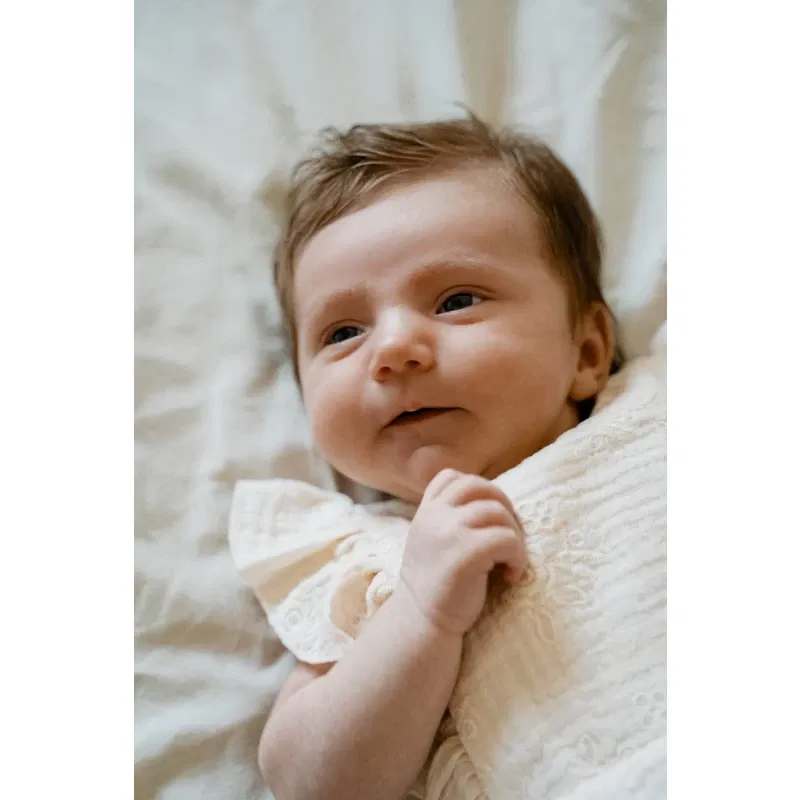 Hoe lief is deze jumpsuit voor je babymeisje? Het pakje is gemaakt van een hydrofiele stof, dit bestaat voor 100% uit katoen. Het pakje bestaat uit één deel. Aan de onderkant is het pakje voorzien van drukknopen. Aan de achterkant zitten ook 3 drukknoopjes. Hierdoor kan je je baby makkelijk verschonen en aan- en uitkleden.