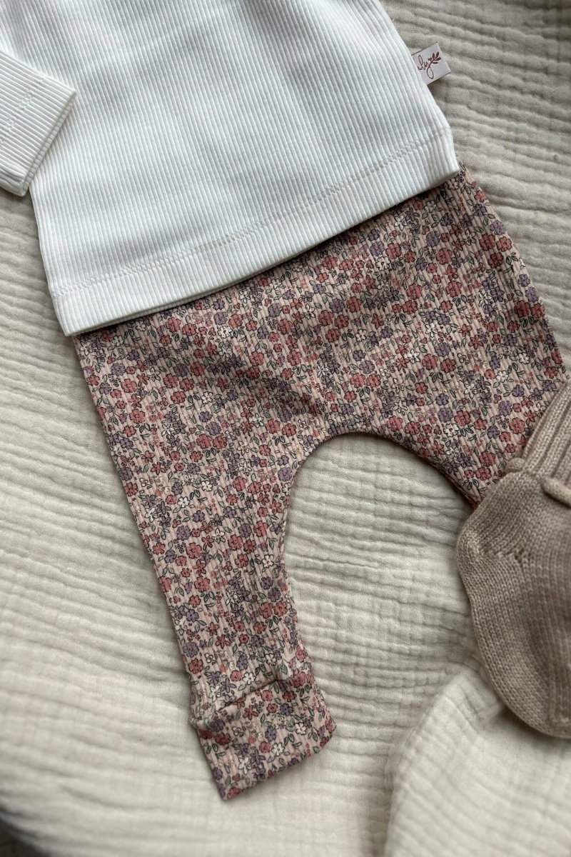 Hello little you - boxpakje ruffles ecru met hartjes zand, mutsje rib hartjes zandkleur, geboorteoutfit meisje baby